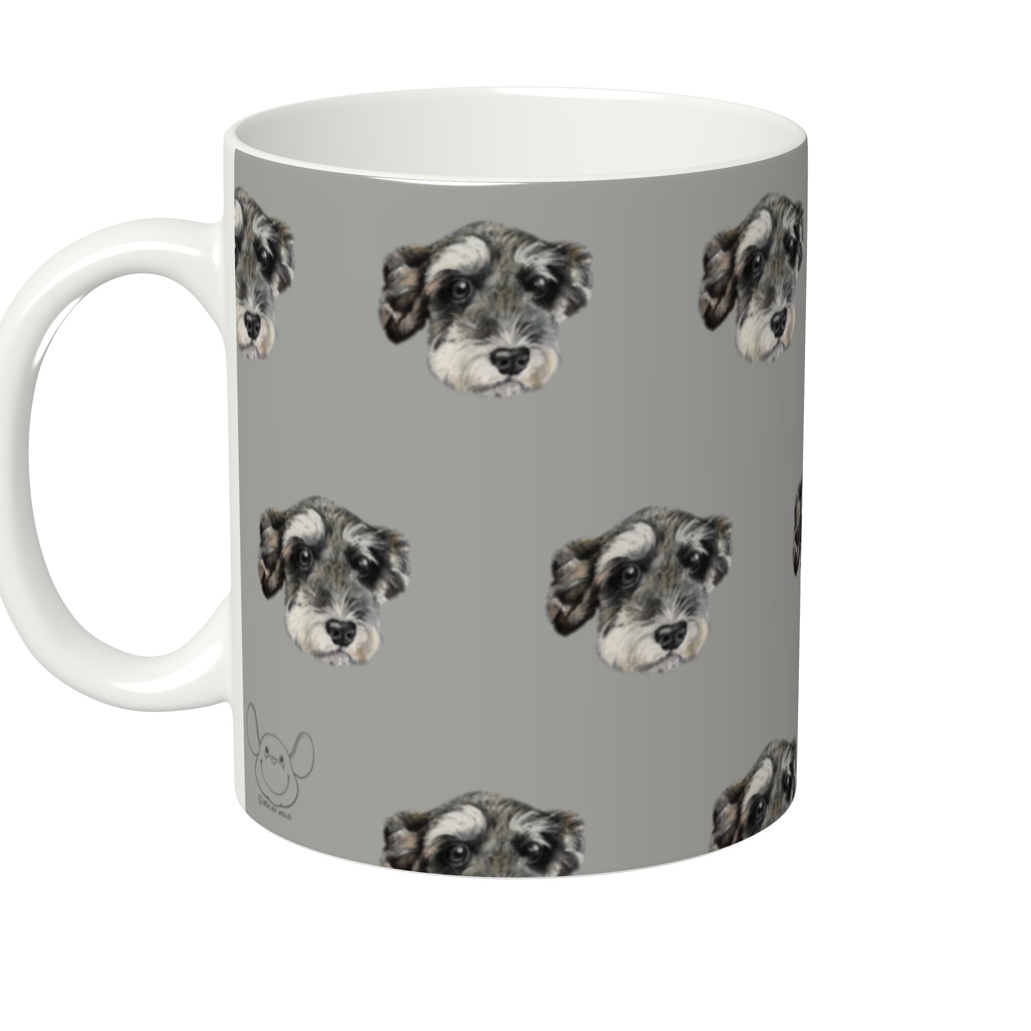 チョークアートで描かれたリアルタッチのミニチュアシュナウザー。Black & silver ドットデザイン。